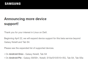 Samsung geçen sene Ağustos ayında tanıttığı Samsung Galaxy Note 9 ve Galaxy Tab S4 ile DeX sistemini daha fazla masaüstü özelliği getiren Linux on DeX uygulamasına yeni bir güncelleme getirdi. Şimdilik sadece Ubuntu 16.04 LTS versiyonu destekliyor(ki masaüstü versiyon bugün 19.04’e geçmek üzere) ancak kullandığımız cihazın bir telefon/tablet olduğunu düşününce yeterli görünüyor.