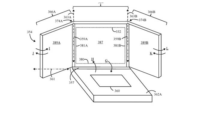 Lenovo'nun 2016 yılında yaptığı bir patent başvurusu ile katlanabilir ekranlı bir dizüstü bilgisayar üzerinde çalıştığını görebiliyoruz. Ana ekranın yanlarına yerleştirilen ekstra 2 ekran hem çalışma kolaylığı hem de görsel zenginlik sağlıyor. OLED panelden imal edilmiş ekranlar esnek bir yapıya sahip ve katlanarak ana ekranın üzerine kapanabiliyor.