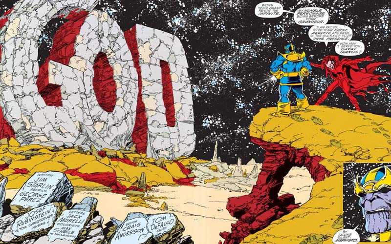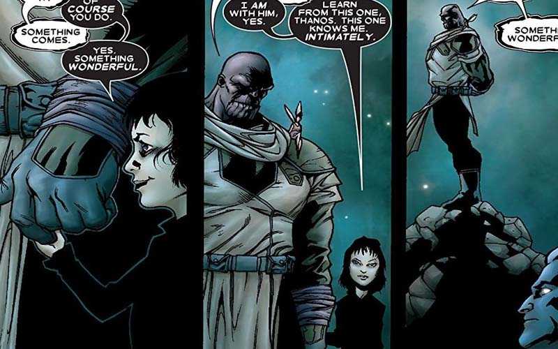 bir aşk üçgeni oluşturan Death’ten başkası değildi. Infinity Gauntlet çizgi romanında Thanos’un karakter motivasyonunun altında yatan gerçek de en büyük aşkı Death’i etkilemekti. Thanos, sevdiği kadını etkilemek için Infinity Gauntlet’i ele geçirmiş ve sebep olduğu katliamlara imza atmıştı.