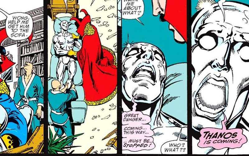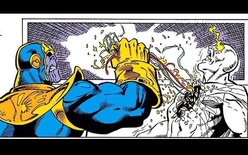 Çizgi romanlarda ise bu görevi üstlenen karakter Silver Surfer’dı. Üstelik aynı filmde olduğu gibi Dr. Strange’in karargahına adeta gökten zembille düşen Silver Surfer, Thanos’un geldiğini haber veren karakter olmuştu. Infinity Gauntlet hikayesi de bu panelle başlıyordu. Elbette ki filmin çekimleri sırasında Silver Surfer’ın film haklarının daha Fox’tan alınmış olmaması onun bu filmdeki varlığını engelleyen bir etkendi. Her ne kadar şu an karakterin film hakları Marvel da olsa bile... Filmde ve çizgi romanda Thanos’un geldiğini öğrenen Dünya’daki ilk karakterin de Dr. Strange olması, çizgi roman hayranları için oldukça keyif verici bir gerçek oldu.