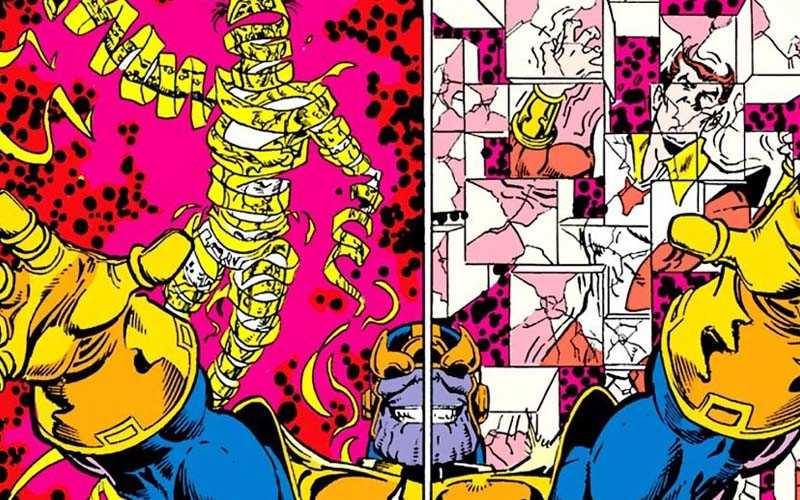 Infinity War filminde kuşkusuz en önemli karakter Thanos’tu. Hem karakterin iyi hazırlanmış altyapısı hem de görünüşü, izleyenlerce oldukça beğenildi. Her ne kadar çizgi romanlardaki Thanos, karakter motivasyonu olarak farklı olsa da filmde Thanos ile alakalı çizgi roman referansları da yok değildi. Filmde Gerçeklik Taşı için Knowhere’e giden Thanos orada Guardians of the Galaxy ekibiyle karşılaşmıştı. Daha doğrusu Thanos’un varlığını ve planını Thor’un ağzından öğrenen ekip, Thanos’a engel olmak için Gerçeklik Taşı’nın bulunduğu Knowhere’e varmıştı. Nitekim Thanos, zekasını ve öngörü niteliğini kullanıp Guardians of the Galaxy ekibini etkisiz hale getirmiş ve Gamora’yı ele geçirmişti. Bu anlarda Thanos’un Drax ve Mantis’i etkisiz hale getirmek için Gerçeklik Taşı’nı kullanarak yaptığı saldırılar, çizgi romanlara çok belirgin bir gönderme içermekteydi.