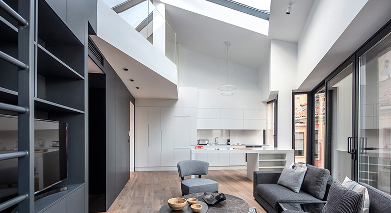 Orta Çağ'dan beri ayakta duran ve İstanbul silüetinin en önemli yapılarından biri olan Galata Kulesi'nin tam karşısında yer alan yeni apartman kompleksi, modern dış cephesiyle tarihi çevreye en iyi şekilde uyum sağlaması adına benzer renk tonları ve malzemeler kullanılarak tasarlanmış.