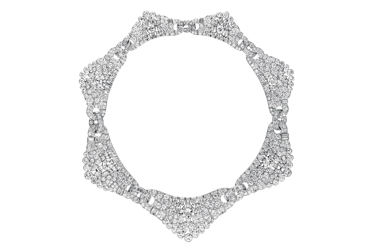 Sergideki bir başka görkemli kolye de model Sarah Croker Poole ile Prens Karim Aga Khan IV aşkının ışıldayan simgesi. 1969’daki düğün törenleri için tasarlanmış olan egzotik parça, 745 elmas ve 18. yüzyıla ait 44 adet zümrüt işlemesinden oluşuyor.