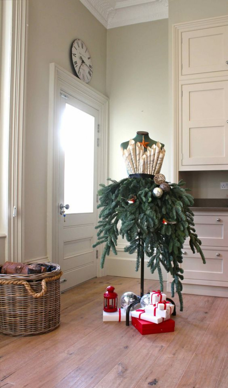 Bu fikir çok hoşuma gitti. Çok değişik ve yaratıcı bir fikir aslında. Eğer bir tasarımcıysanız, evinizde veya atölyenizde prova mankeniniz varsa, bu fikri yılbaşı ağacı yerine size kullanabilirsiniz. Eminim ki yaparken çok zevk alacaksınız.