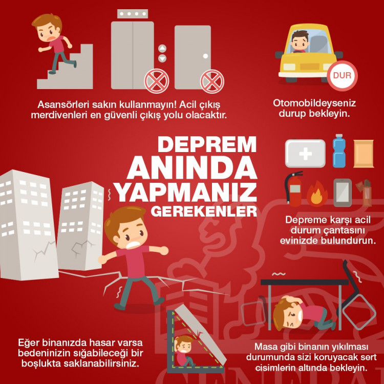 Hasarlı binalardan uzak durun: Depremden hasar gören binalardan uzak durun ve yetkililerin güvenli olduğunu açıklamasını beklemeniz çok önemlidir. Panik Yapmamak hayat kurtarır.