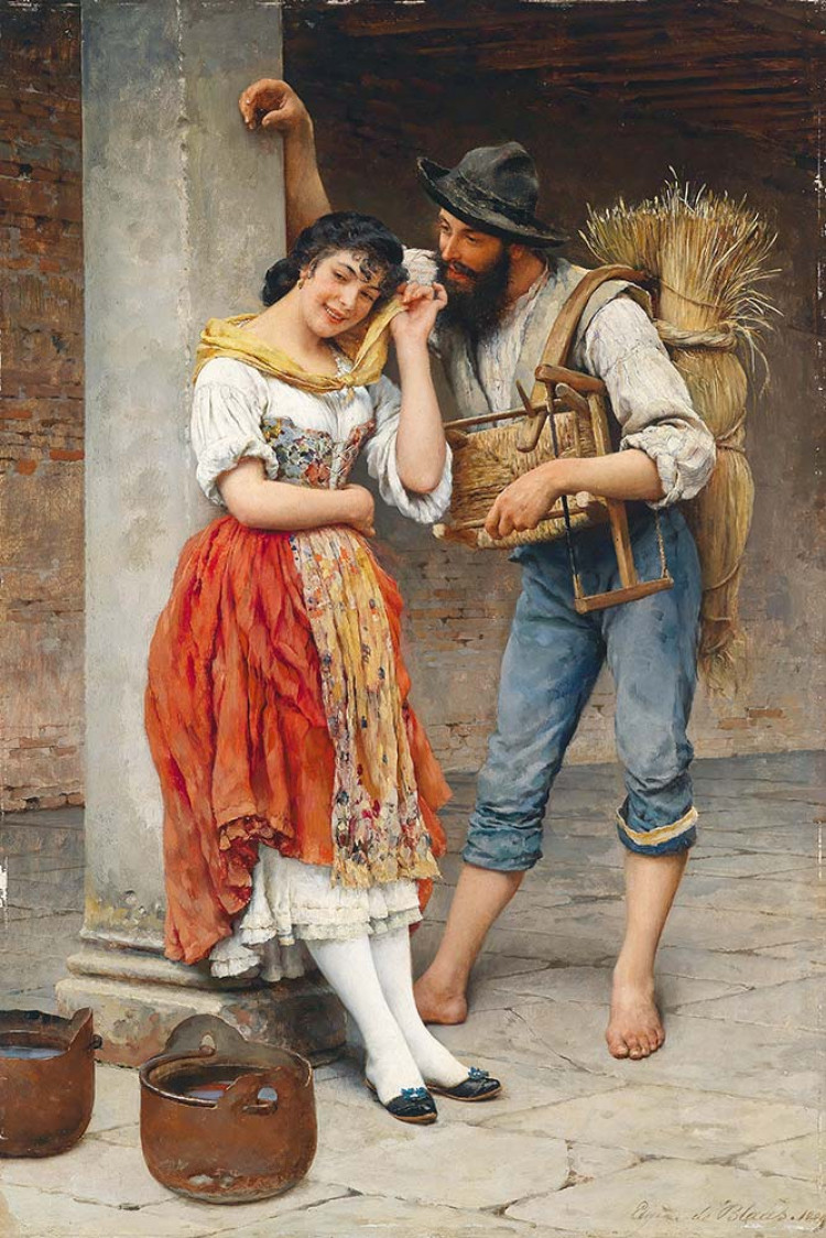 Bir yazarın kelimeleriyle cümlelere yüklediği anlamı bir ressam da boyaları ile resmine yükler. İşte bugün İtalyan bir ressamın fırçalarındaki mesajları Türk bir öykücünün satırları arasında olduğunu göreceğiz. Ressamımız Eugene de Blaas. 1843’te Albano’da doğdu. Onun iki değerli tablosu bizlerle olacak. İlk olarak Eugene de Blaas’ın Arkadaşça Dedikodu tablosuna bir göz atalım.