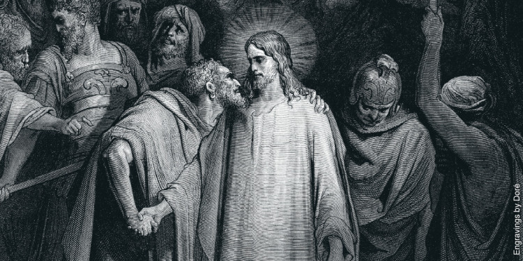 İsa ve öğrencileri Getsemani Bahçesi’nde dua ederken Yahuda askerleri oraya götürür. Yahuda, askerlerin İsa’yı tanıması için bir işaret vermeyi kararlaştırmıştır. İsa’yı yanaklarından öperek “Bu ‘o’,” der. Bu nedenle Yahuda’nın öpücüğü tarihte “ihanet öpücüğü” olarak anılır. Bu olaydan sonra İsa tutuklanır. Yahuda ise pişmanlıkla büyük bir çöküş yaşar; bazı anlatılarda kendini asarak intihar ettiği söylenir.