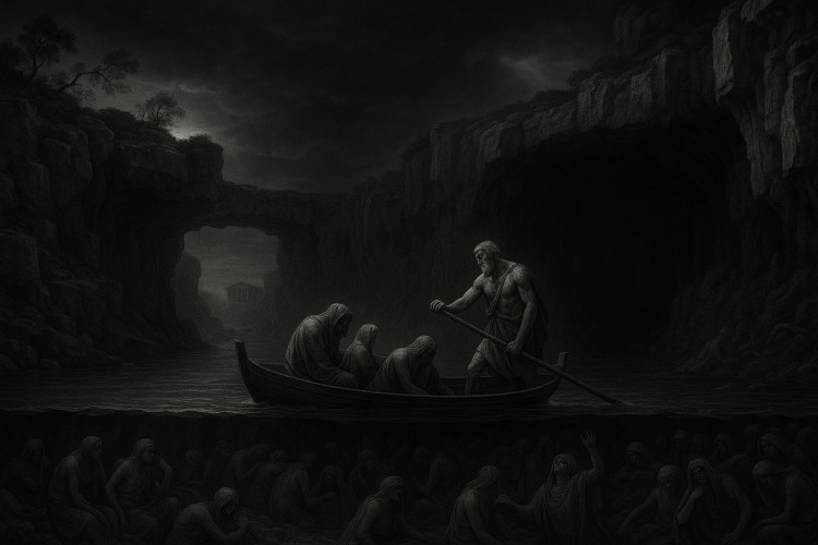 Öte dünyanın genel adı Hades’tir. Ancak Hades yalnızca tek bir diyardan ibaret değildir; içinde farklı bölgeler barındıran, katmanlı bir ruh coğrafyasıdır. Ruh, ölür ölmez bedeninden ayrılır ve Styx Nehri kıyısına yönelir. Burada ruhları karşılayan figür Kharon, ruh kayıkçısıdır. Kharon’un tek şartı vardır: Geçiş bedeli. Ölenlerin ağzına ya da gözünün üzerine konulan bir obolos (küçük gümüş para), bu yolculuk ücretidir. Parasız kalan ruhların, nehrin kıyısında yüz yıl boyunca dolaşmaya mahkûm olduğuna inanılırdı. Bu nedenle ölü gömme ritüelleri yalnızca sosyal saygı değil; ruhun yolculuğu açısından zorunlu bir hazırlıktı.