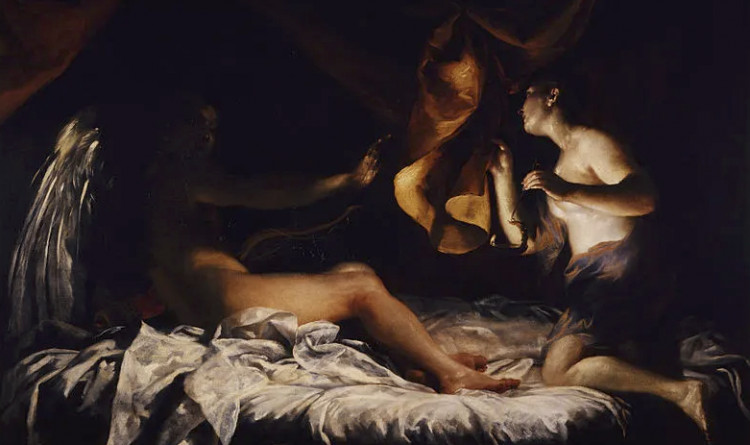 Gece çöktüğünde, Psyche eline aldığı lambayla uyuyan kocasının yüzüne ışık tuttu ve karşısında bir canavar değil, tanrıların en güzellerinden biri olan Eros’u gördü. Ancak bu keşif, bir mum damlasının Eros’un omzuna düşmesiyle sona erdi. Eros gözlerini açtı ve karşısında güvenini kırmış bir sevgili buldu. Hiçbir şey söylemeden gitti — ve beraberinde aşkın ta kendisini de götürdü.