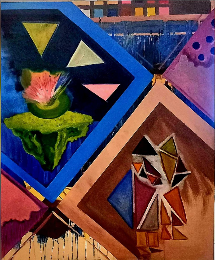 Yağlıboya Çalışmasının Künyesi: 100 x 120 cm- Gerçekliğin ve Soyutluğun Arkasında Gizlenen Rüya T.Ü.Y.B. – Akrilik Boya/ Karışık Teknik- 2024-2025 yılı