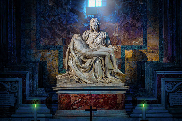Michelangelo’nun Pietà’sına yaklaştığında bakış, biçimi çözmeye çalışmaktan çok yüzeyi hissetmeye yönelir; Carrara mermeri alışıldık sertliğini geri çekmiş gibidir ve ışık değdikçe taş, soğuk bir malzeme olmaktan çıkıp teni andıran bir yumuşaklığa bürünür. Işığın mermer üzerinde ağır ağır dolaşmasıyla birlikte çizgiler keskinliğini yitirir, bedenin sınırları incelir ve İsa’nın bedenindeki gevşeklik gözle görülmekten çok sezgiyle algılanan bir hale dönüşür.