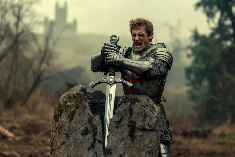 Gençlik döneminde Britanya’da kimin kral olacağı belirsizdir. Taşa saplanmış olan Excalibur adlı kılıcı yalnızca gerçek kralın çıkarabileceği söylenir. Arthur bu kılıcı taştan çıkararak tahtın meşru sahibi olduğunu kanıtlar ve kral olur. Daha sonra Camelot’u kurar ve Yuvarlak Masa Şövalyeleri ile birlikte ülkesini adaletle yönetir.