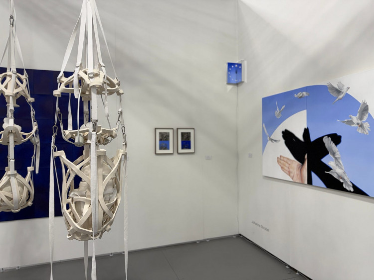 Regarding the fair overall, galleries are obsessively attached to the ‘eye level’ tradition. While I encountered a few examples that stood out with new ideas, one must reflect on misused spaces. Galleries! Don’t think of booths as if they were 21:9 films; you can use every inch, guide the viewer up, down, sideways, into corners, creating enjoyment during the experience. Aligning works side by side at the same height only gives the impression of an elderly hobbyist painter.