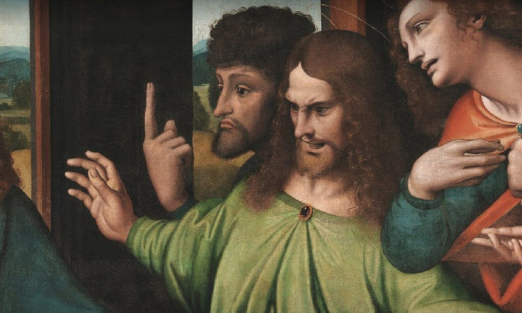 Thomas’ın Parmağı: İsa’nın sağındaki bir figür, işaret parmağını uzatan Thomas’tır. Bu, İsa’nın ölümden dirildiği hikayenin bir kısmına bir göndermedir.