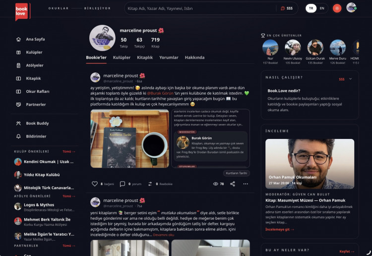‘’Book Love’’, diğer kitap platformlarından farklı olarak tüm okurları buluşturmayı hedefleyen bir topluluk kuruluşu ve ben de son zamanlarda burada daha sık bulunmaktan her anlamda keyif alıyorum. Diğer sosyal medya uygulamalarının aksine algoritma kurbanı olmuyorsunuz; kitap odaklı paylaşımlarınızı karakter sınırlaması olmadan dilediğiniz gibi yazabiliyor, sonrasında ise düzenleme bile yapabiliyorsunuz. Burada kavga gürültü yok, linç ortamı ve öfkeli bir dil de görmedim. Edebiyat üzerine dönebilecek tartışmaların medeni bir ortamda gerçekleşebileceğini gösteren kaliteli bir uygulama bence. En güzeli de kitaplar dışında, konuyla alakasız paylaşımların karşımıza çıkmaması. Burada yalnızca kitaplar var, edebiyat var.