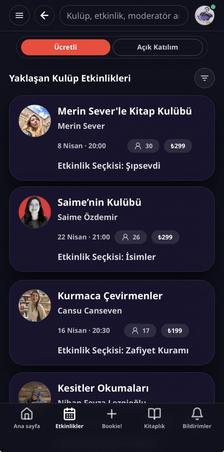 Uygulamanın en iyi taraflarından biri de kitap kulüplerinin bir arada olması: Ücretli-ücretsiz seçenekleriyle bünyesinde birçok kulüp var, dilerseniz kendi kulübünüzü de kurabiliyorsunuz.
