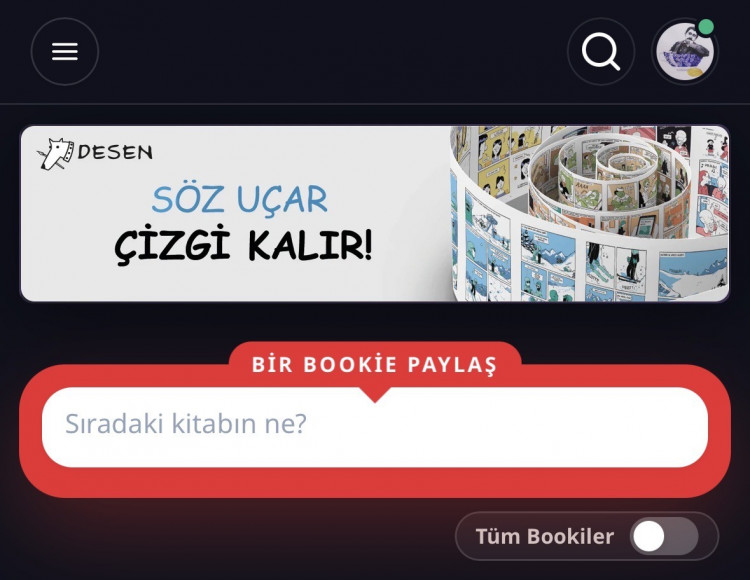Paylaşımlarınıza görsel de ekleyebiliyorsunuz. Burada her şey ‘’bookie’’ adı altında ana sayfada ve profilinizde görülebiliyor.