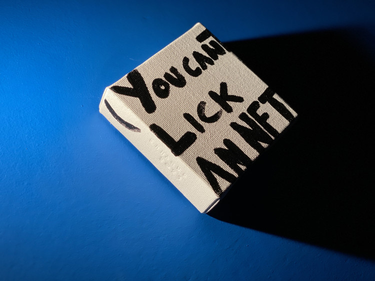 If this work had been produced 20 years ago, in a period before the emergence of NFTs, the viewer would experience it through the question “What do these three letters signify?” without forming any association. The ambiguity, “What can I not lick, why, and why should I lick it anyway?”, would itself become part of the experience.