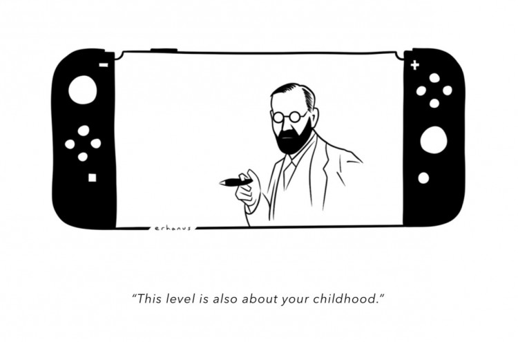 For the work to evoke associations with childhood, it requires knowledge of Sigmund Freud and an understanding of how psychoanalytic theory relates to childhood. Freud appears as a global cultural reference independent of geography, yet demands recognition from the viewer. A reader unable to associate the glasses and iconic cigar silhouette with Freud will derive little meaning, especially given the intentionally minimal text.