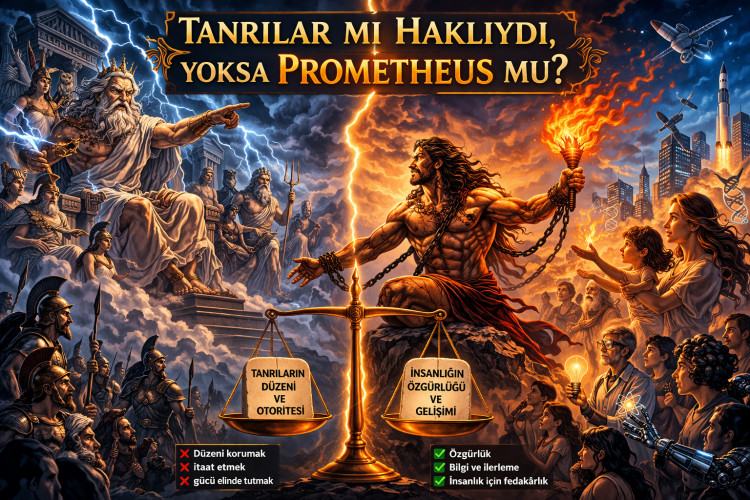 Tanrılar açısından bakıldığında, özellikle Zeus’un tepkisi tamamen mantıksız değildir. Çünkü bir düzen kurmak, onu korumayı da gerektirir. İnsanların kontrolsüz bir şekilde güç kazanması, kaos yaratma ihtimalini beraberinde getirir. Bilgi ve güç, her zaman doğru kullanılmayabilir. Bu yüzden tanrılar, sınır koyarak bir denge sağlamaya çalışır. Onlara göre Prometheus’un yaptığı şey, sadece bir iyilik değil; potansiyel bir felaketi başlatmaktır.